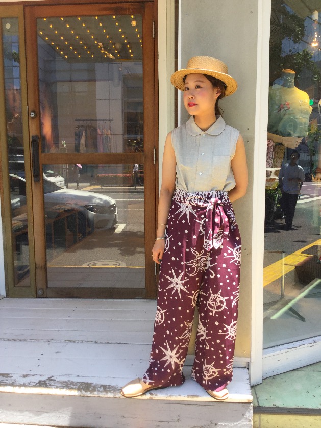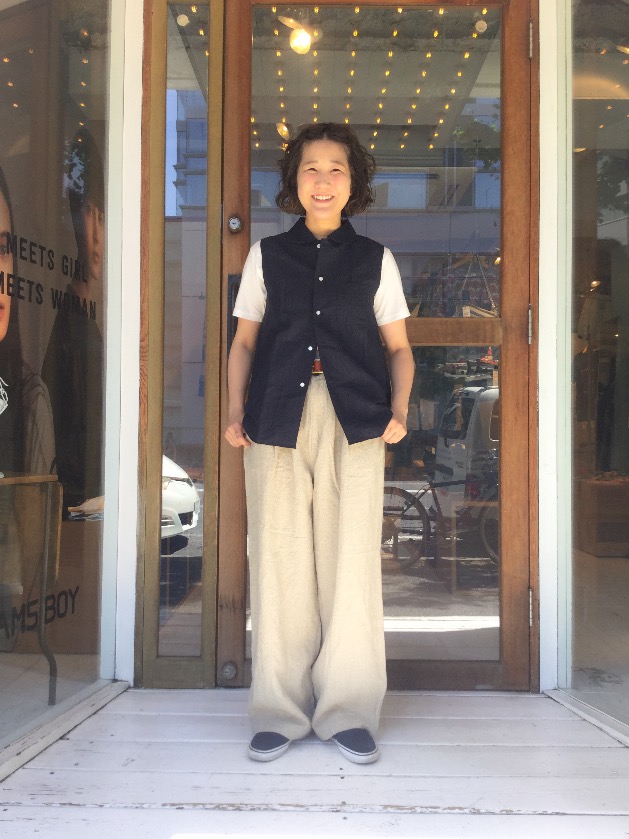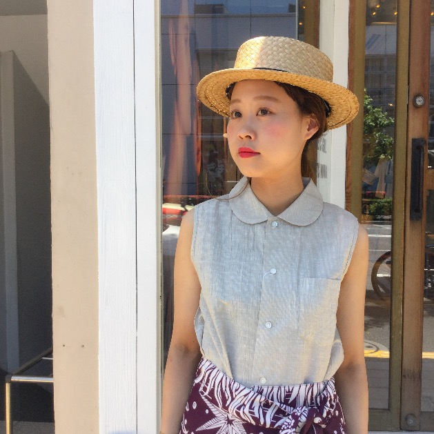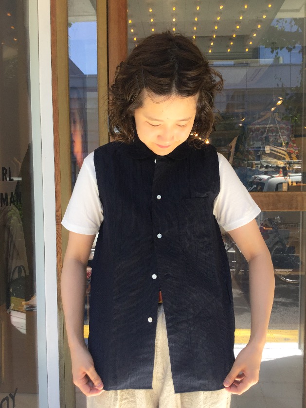 BEAMS BOY リネンワッシャー丸襟ノースリーブシャツ