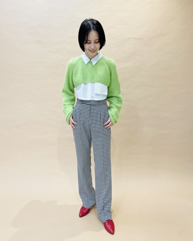 ハイウエストのボトムスならではの組み合わせが楽しいです。