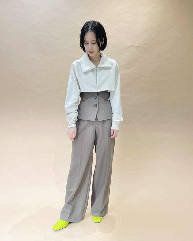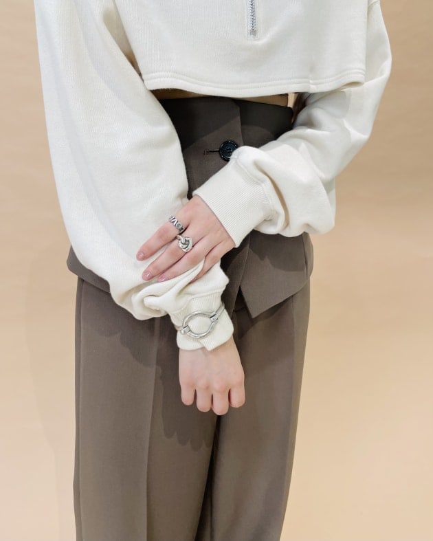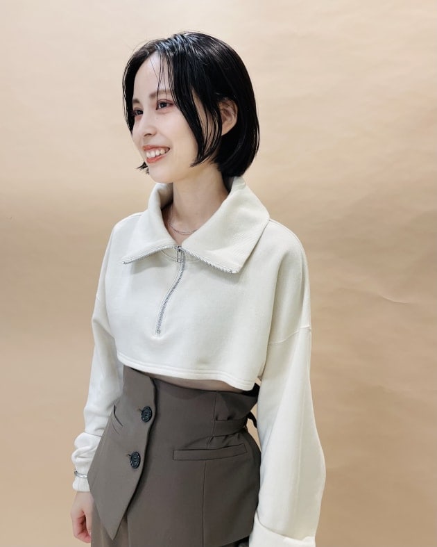 スーパークロップト丈のスウェットは昨年から引き続きトレンドのジップアップ仕様。