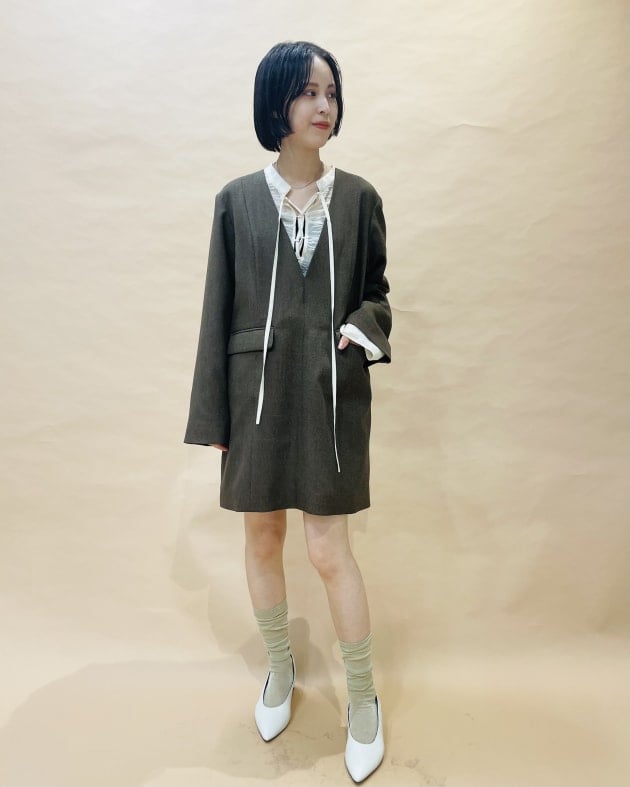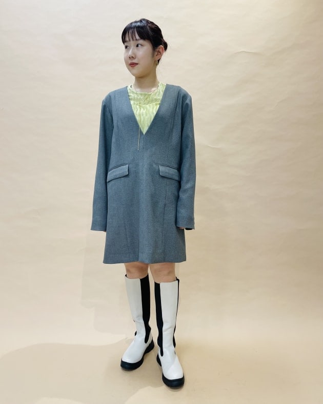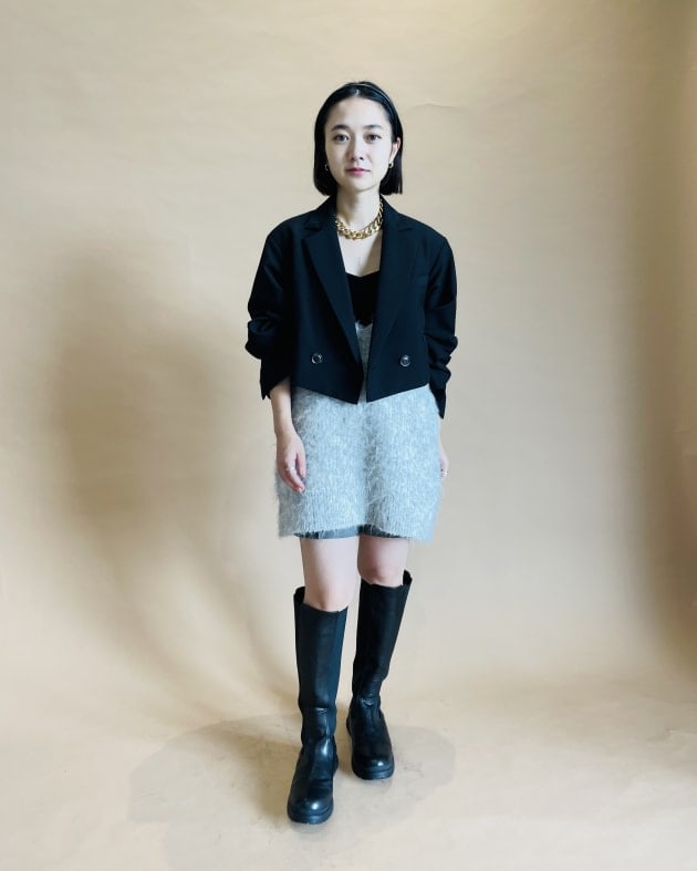 ミニ丈ジャケットとロングブーツ合わせが今まさに着たいバランスですよね!!