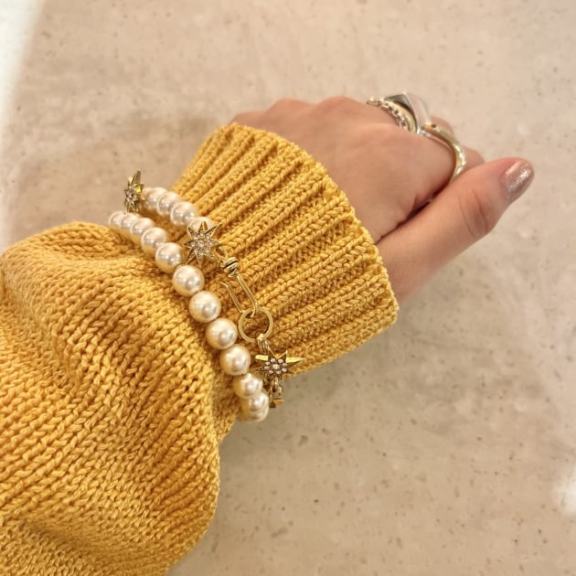 短い方は二重にするとちょうどいいブレスレット!!わたしはこの付け方すごーく好き!