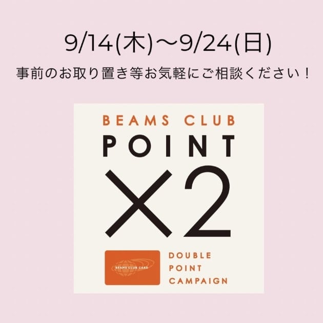 そして明後日9/14 - 24はビームスクラブポイント2倍キャンペーン!