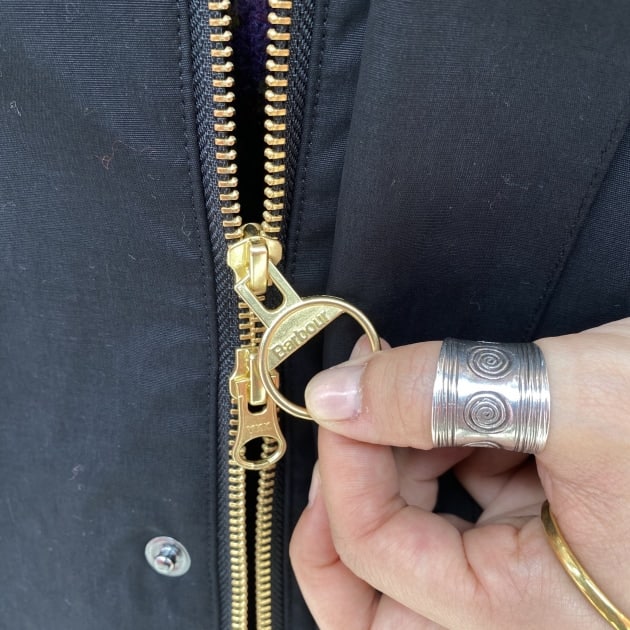 <Barbour>の自社ジップを採用。元ネタのビデイルから来ています。仕様としては手袋をしたままでも着脱しやすいというメリット!嬉しいぃ!(パート2)