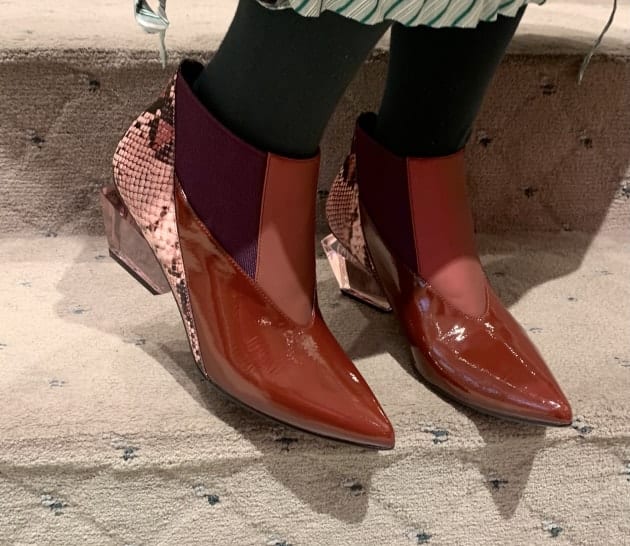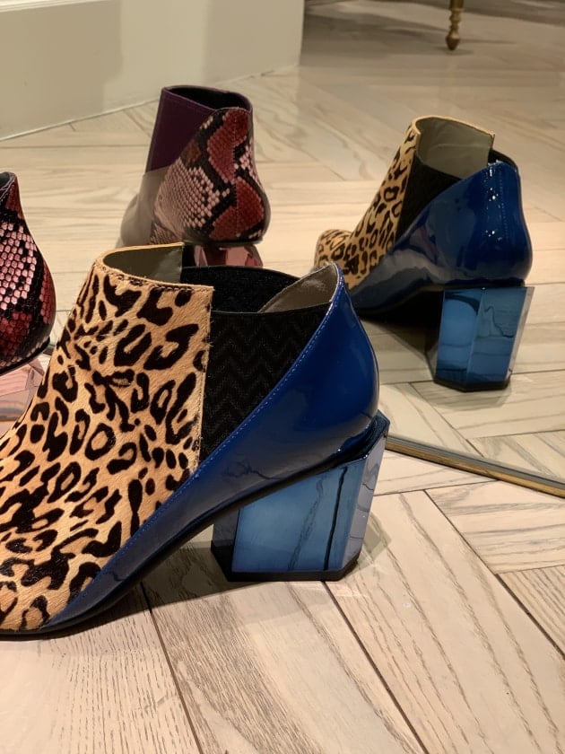 定番のブーツはメタリックなブルーとレオパードのコンビネーション。