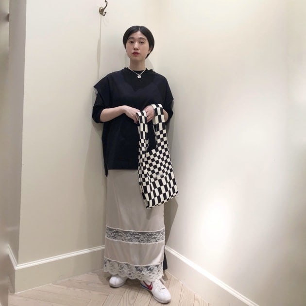 続いてはこちら。連載初回のスタイリングです。トップスとスカートがmaturely。