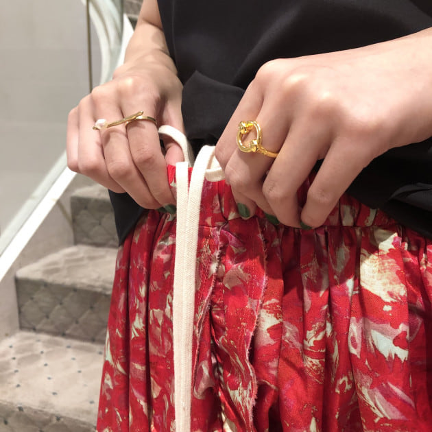 エネルギッシュなカラー、大胆なフリルが甘すぎない、正にChika Kisadaらしいスカートです。