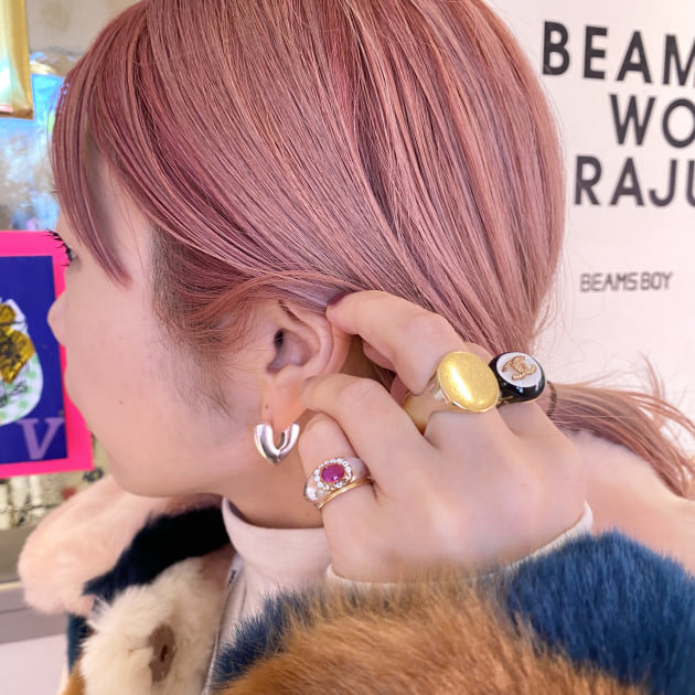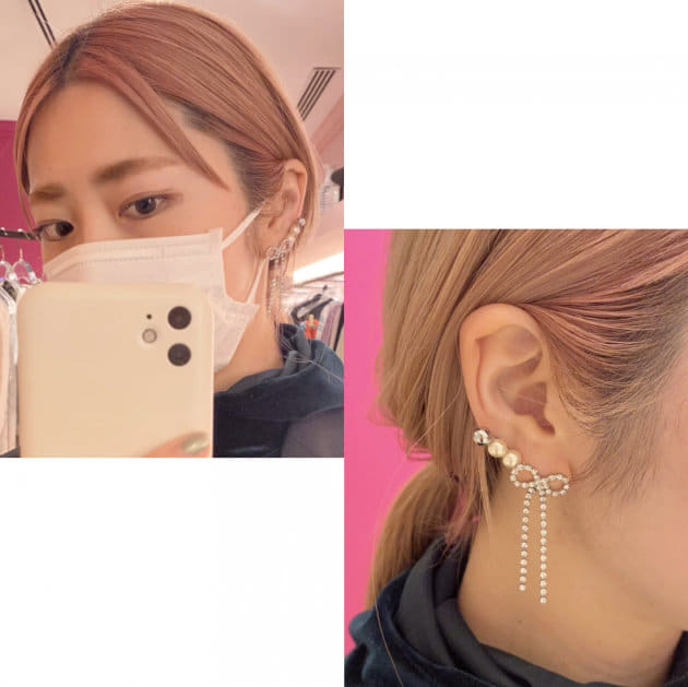 可憐なピアスを重ね付け。