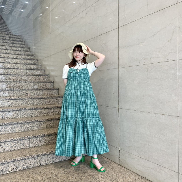 先程紹介した、キャミワンピースと合わせてグリーンで統一するのも素敵です!