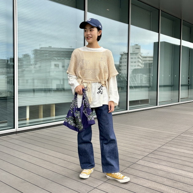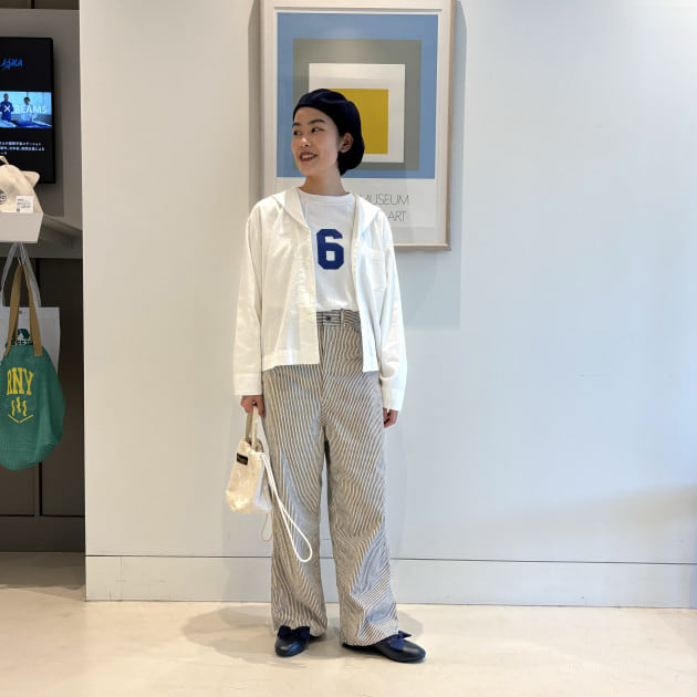 パンツは大人気<GRAMICCI>と<BEAMS BOY>別注のもの。締め付けが全くなく、ゆったりと履いていただけます。サラッとした着心地なので春夏にぴったり!◎