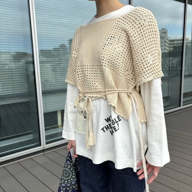 中に着ているカットソーは実際に私も予約いたしました!サラッとしていてレイヤードにぴったりなのです。