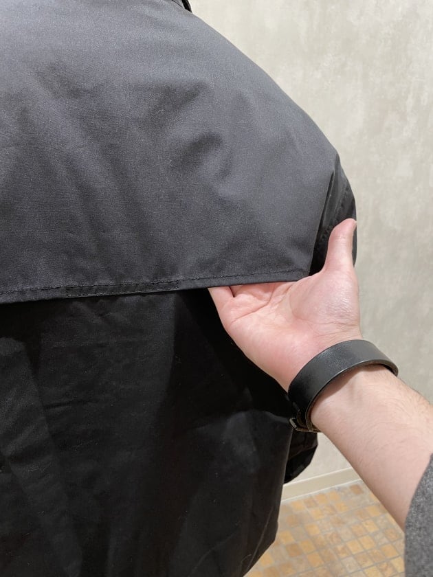 前からはジャケットなどと同様にカッチリ見えるのに、後ろはラグランスリーブで可動域を確保したハイブリッドな作りなんです。