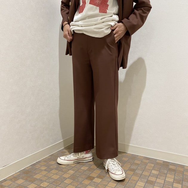 スラックスはというと、ピタッとジャストで履くのもかっこいいのですが、サイズ1を選び締め付けのない!履き心地重視で選びました。