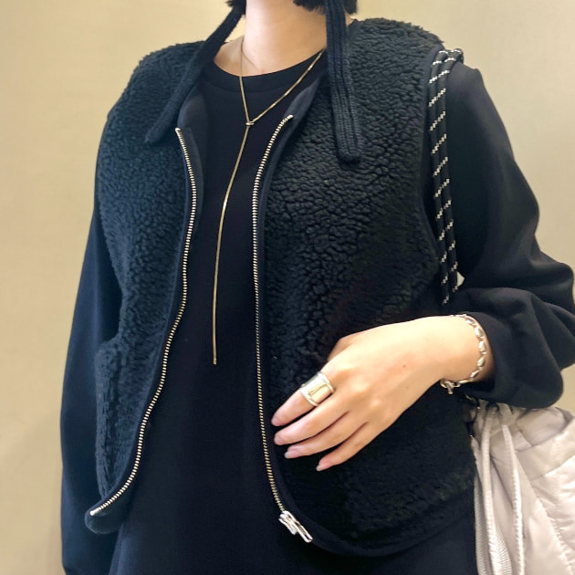 ボアベストはふんわりとした立体感があり、シルエットに“旬のボリューム”をプラスしてくれます。