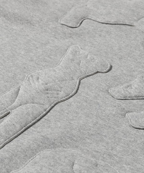 ワッペンのような立体的なモチーフが特徴的な、一見同じブランドとは思えないスウェット。