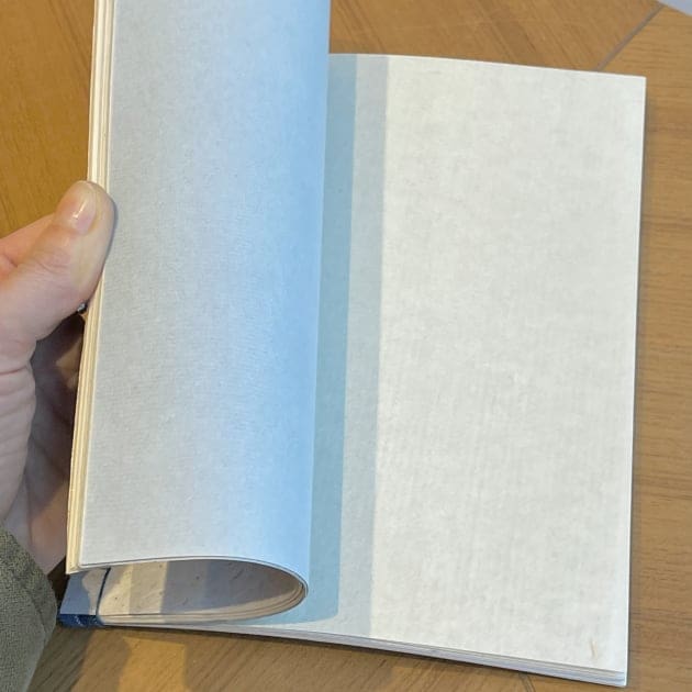 中は<因州和紙伝承工房かみんぐさじ>の質感、色などが異なるデッドストックの和紙が使われ、ページをめくる毎に目にも指先にも変化が感じられます。