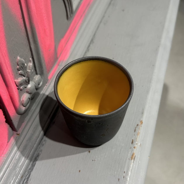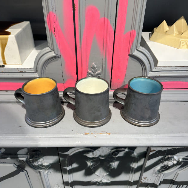 火山灰で作られ独特の色と質感が唯一無二なマグカップで、経年変化も楽しみの一つです。