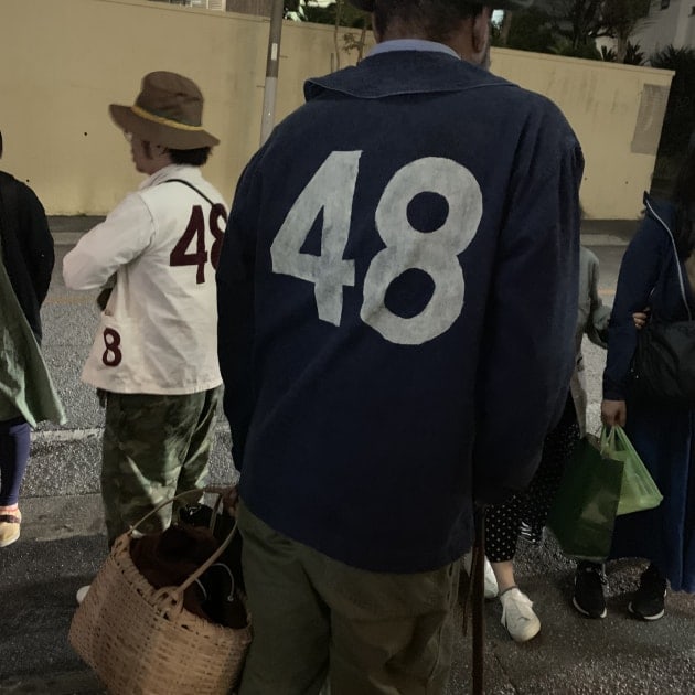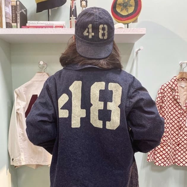 このジャケット、《48》を自分の番号にしている友人(レーシング関連の方とのこと)と会う時、ドリンキングジャケットが手元に無く、色々探した中の1着に自分でペイントしたものだそうです。