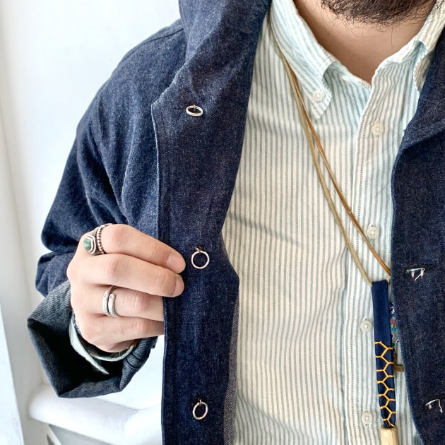 ちのみに、こちらのジャケット、デッキワークジャケットということで、ボタンがチェンジボタンとなっております。