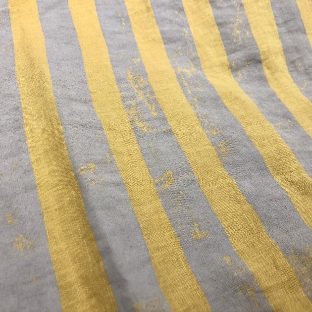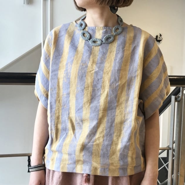 インクを付けたローラーを直接生地の上に転がして、ラインを描いたブラウス。