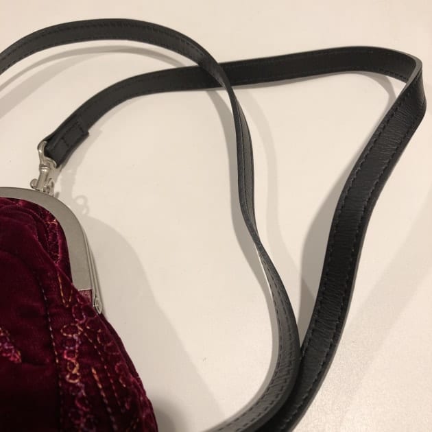 こちらはレザーのショルダーストラップが付いているので、斜めがけでお待ちいただけます。