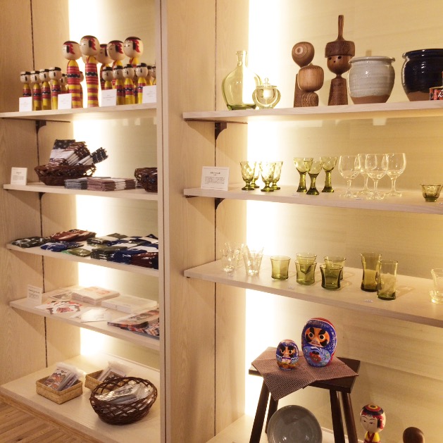 松川だるま(本郷だるま屋)、インディゴこけし・石原日出男デザインアーカイバルこけし・ラスタこけし(仙台木地製作所)、手ぬぐい(名取屋染工場)、仙台箪笥(仙台箪笥協同組合)、いちごたわし(LOVE FOR NIPPON 山元タイム)、皿・甕・鉢カバーほか(三輪田窯)、ぐい呑み・ゴブレットほか(海馬ガラス工房)、絵葉書・クリアファイル(東北福祉大学芹沢銈介美術工芸館)、作並こけし(平賀こけし店)