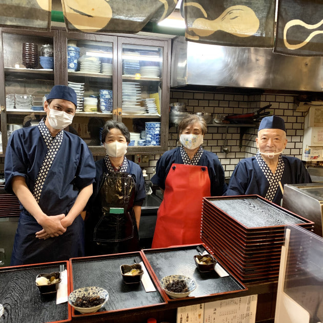 写真の左から2番目、黒いエプロンをされている店員さん(私たちの中ではこっそりサービスマスターと呼んでおります)から、お店の方達がインターネットが苦手なこと、娘さんから今回のプロジェクトのページを見せてもらったことを教えてもらいました。