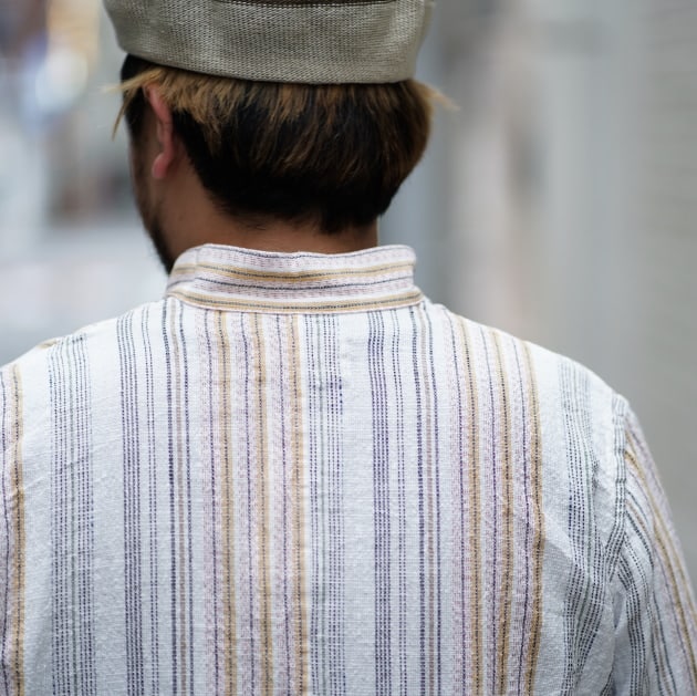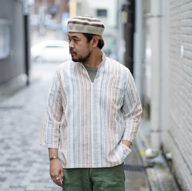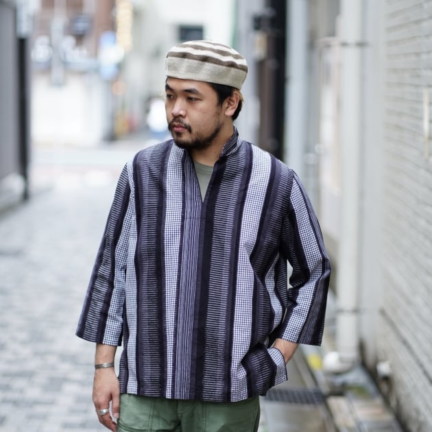<オカモト商店 × fennica> 別注 久留米絣 プルオーバー シャツ
