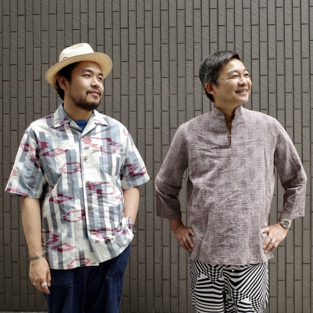 毎年大好評頂いている、絣の生地を使用したアロハシャツと、プルオーバーシャツです。