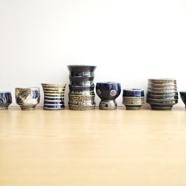 透明感と深みのある青がなんとも美しい。ドイツ発祥の手法を濱田庄司が持ち帰り、代々親子三代で製作されています。