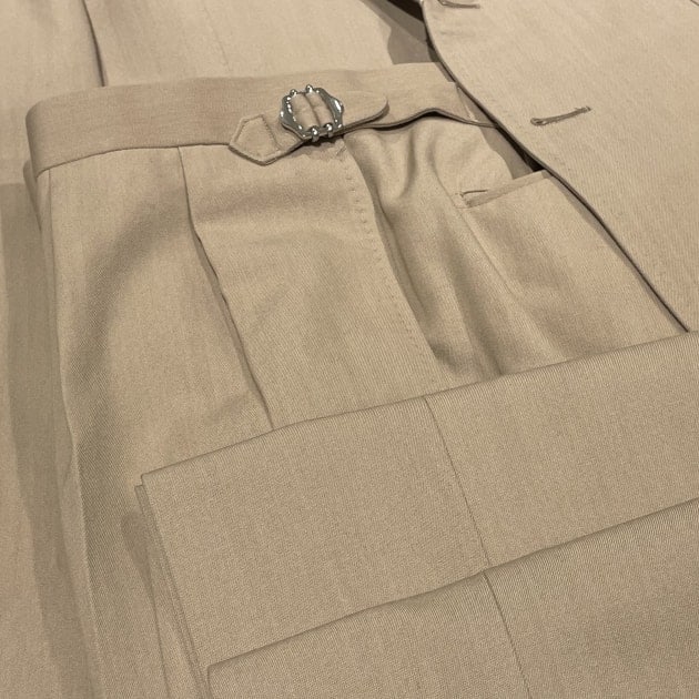 生地は英国Savile Cliffordのウール52%コットン42%。比較的明るいトーンのBEIGEカラーです。