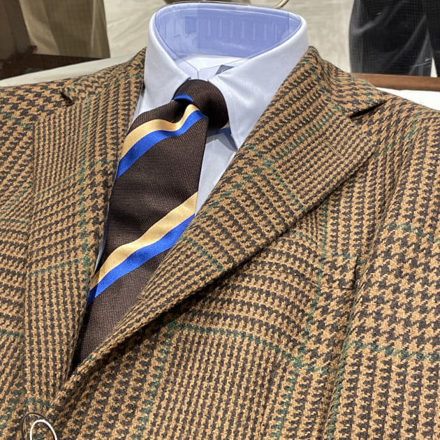 タイドアップならやはりレジメンタルでしょうかね。シャツはオックスフォードボタンダウンを合わせました。ご参考まで。