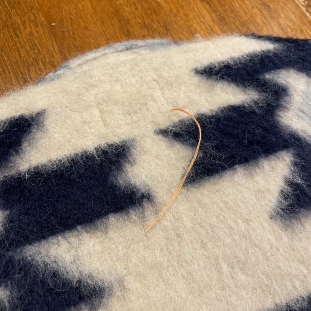 素材はポリエステル47%ウール33%アクリル20%。毛足の長いふんわりした生地を採用しております。見た目以上に軽さの感じられる素材感です。