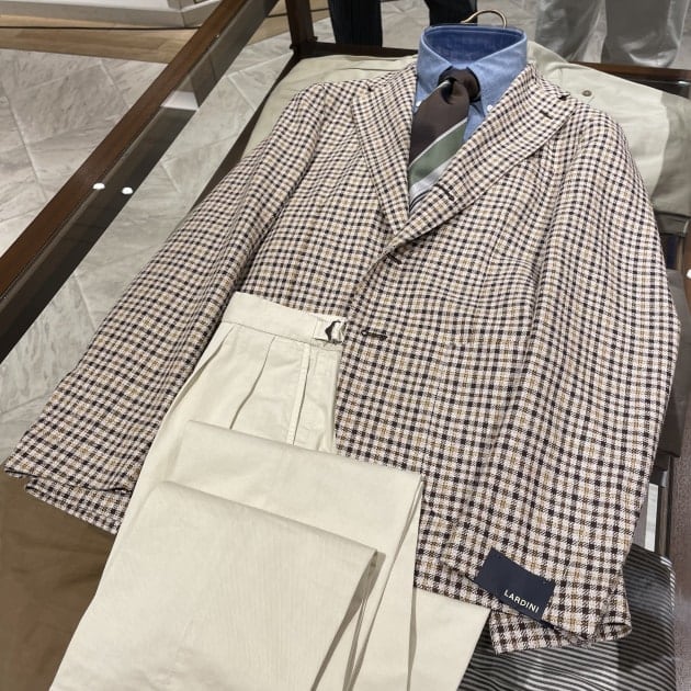 本日のブログは6Fフロアからジャケットのご紹介です。<LARDINI>から品の良いチェックジャケットが入荷しております。