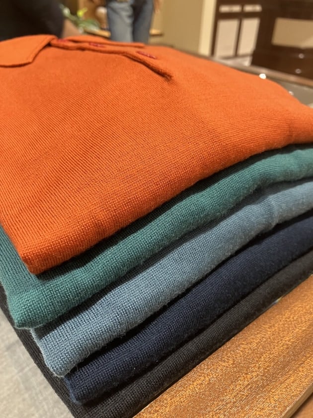 品のあるこのニットポロはジャケットのインナーでも1枚で着ても様になりますね。
