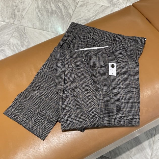 商品紹介は6Fフロアから。23年秋冬シーズンは是非ワードローブに加えて頂きたい、パターンドトラウザーズ。柄物スラックスですね。<PT TORINO>から良いのが入荷しております。