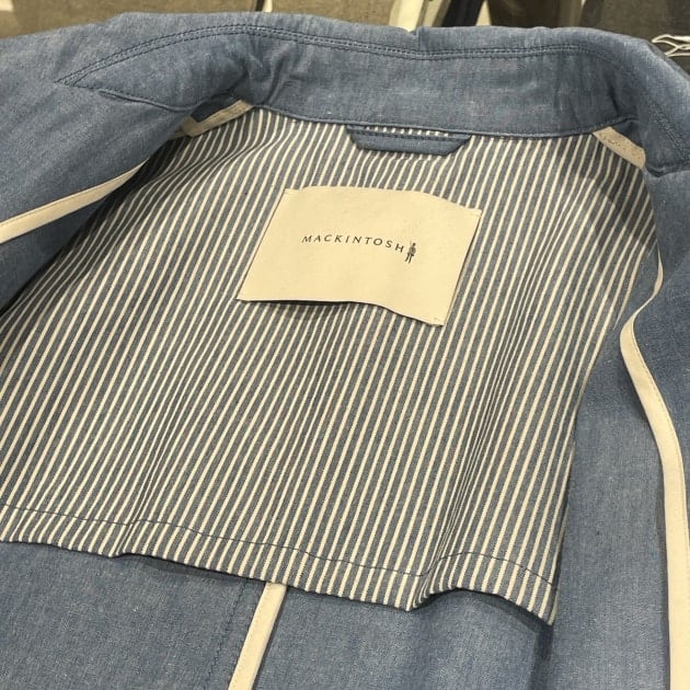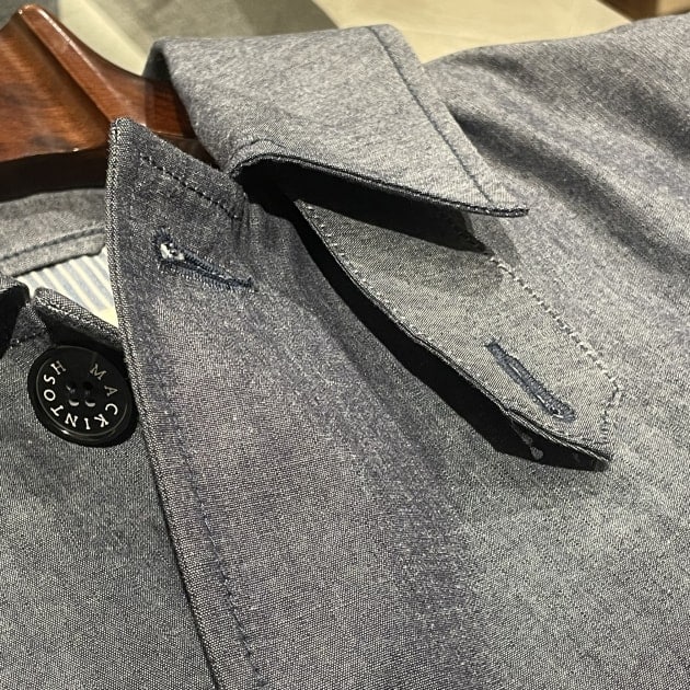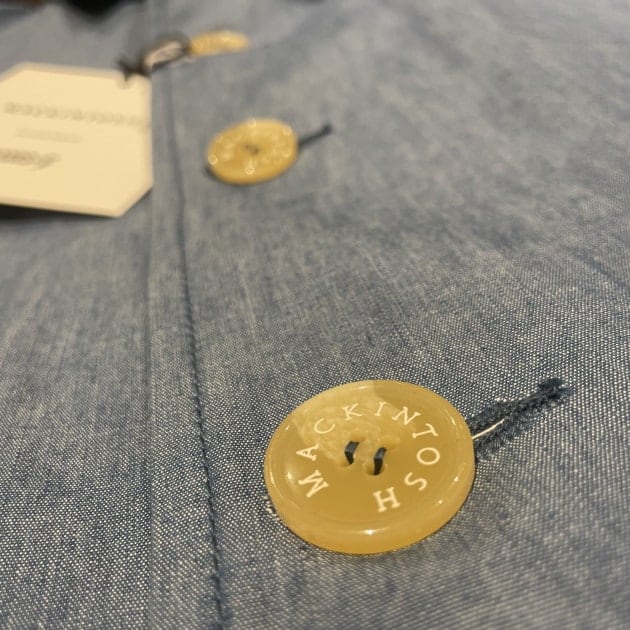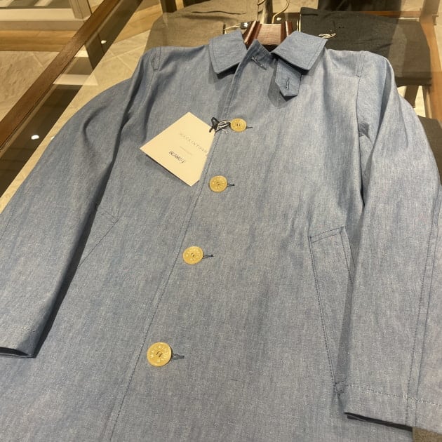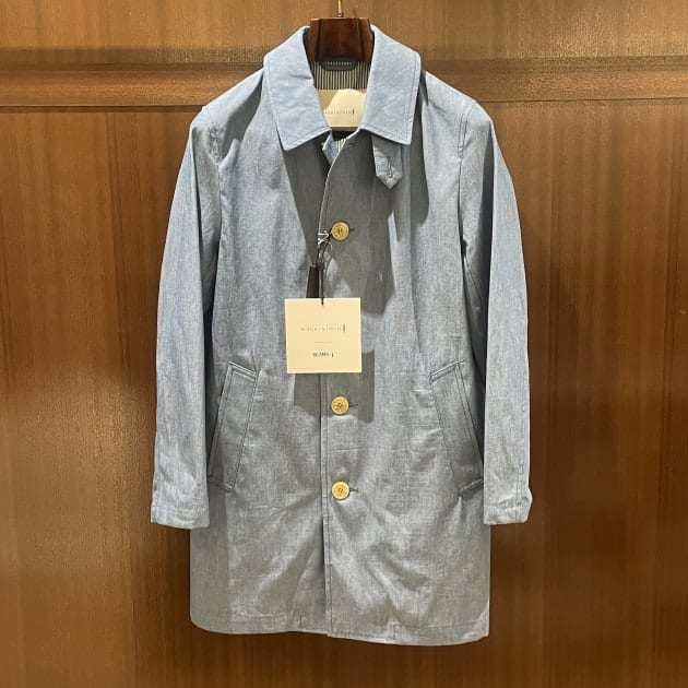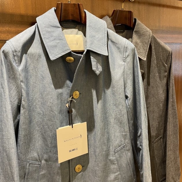 スプリングコートといえば、<MACKINTOSH>ですね。今年もBEAMSエクスクルーシブモデルを展開しております。ダンガリー生地を載せたショートステンカラーコートです。