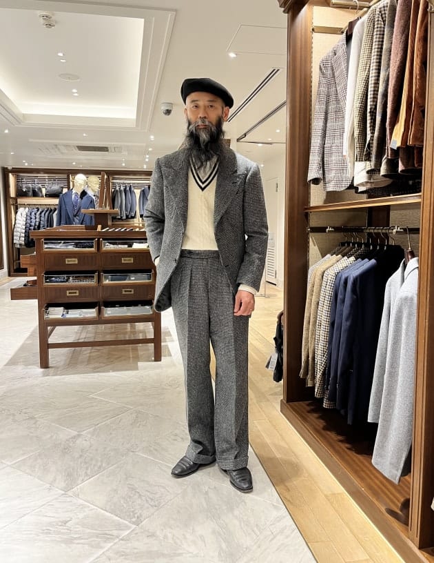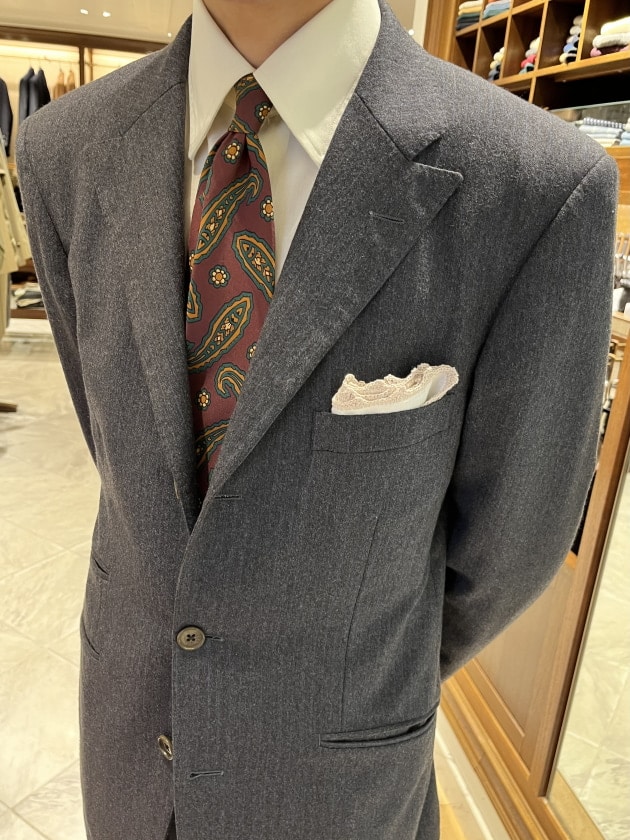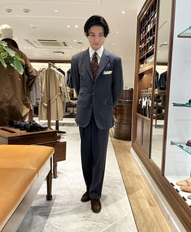 重くなりがちなフランネルのスーツでしたが、サラッと軽く着こなすのは流石ですね。
