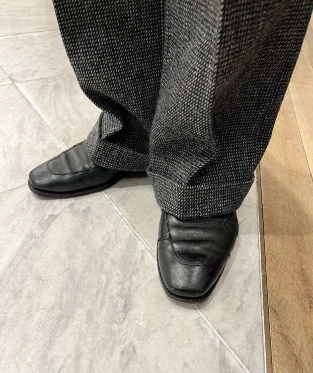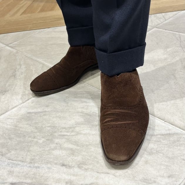シューズは<George Cleveley>のサイドエラスティックシューズで、プレーントウなどよりは少しスポーティーな印象。