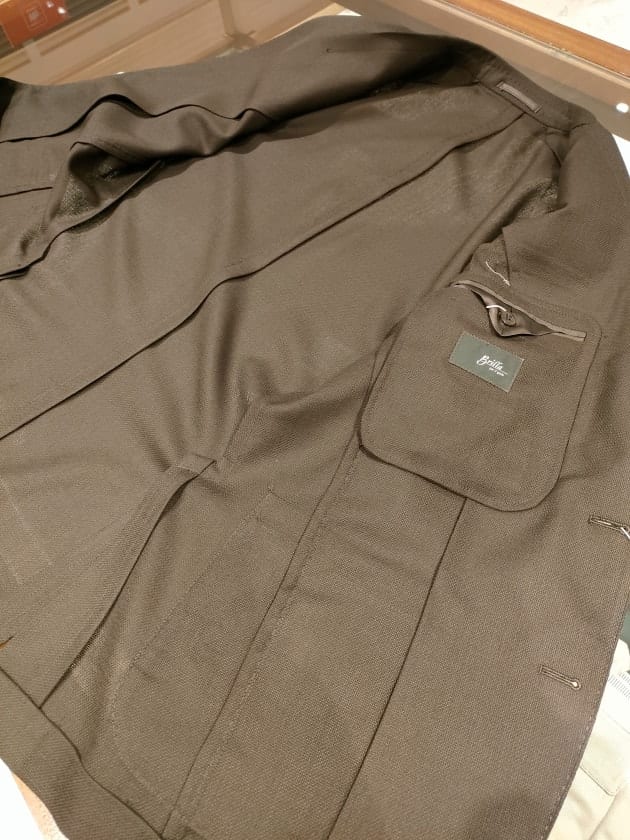 <Brilla per il gusto>レーベルより、オリジャケットが入荷いたしました。当店では袖丈調整とボタン付け修理が必須の「アンフィニッシュ」仕様のジャケットが多い中、こちらは既に袖ボタンが付いた状態で納品されるシリーズ。