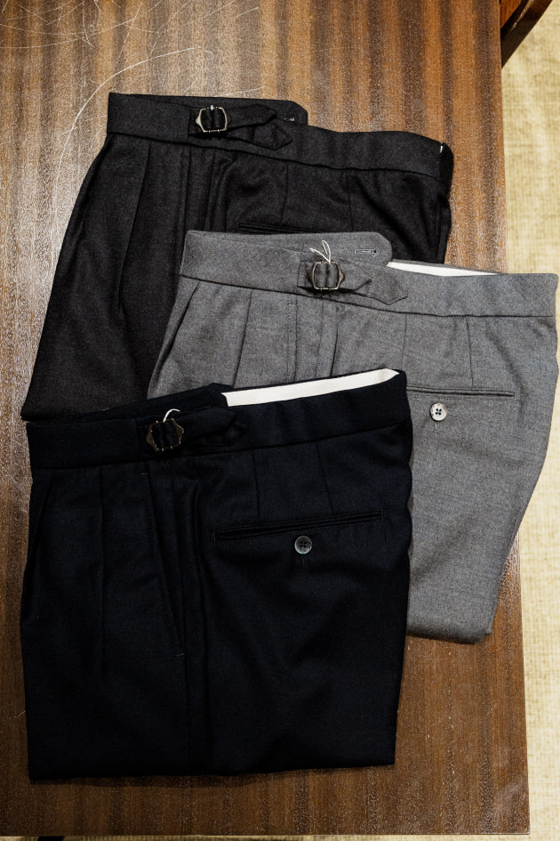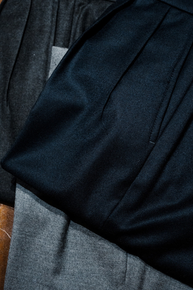 イタリアのパンツ専業ブランド<GTA>の定番モデル<HERRICK>はサキソニー(ライトフランネル)生地を採用した扱いやすいウールスラックスが入荷しました。