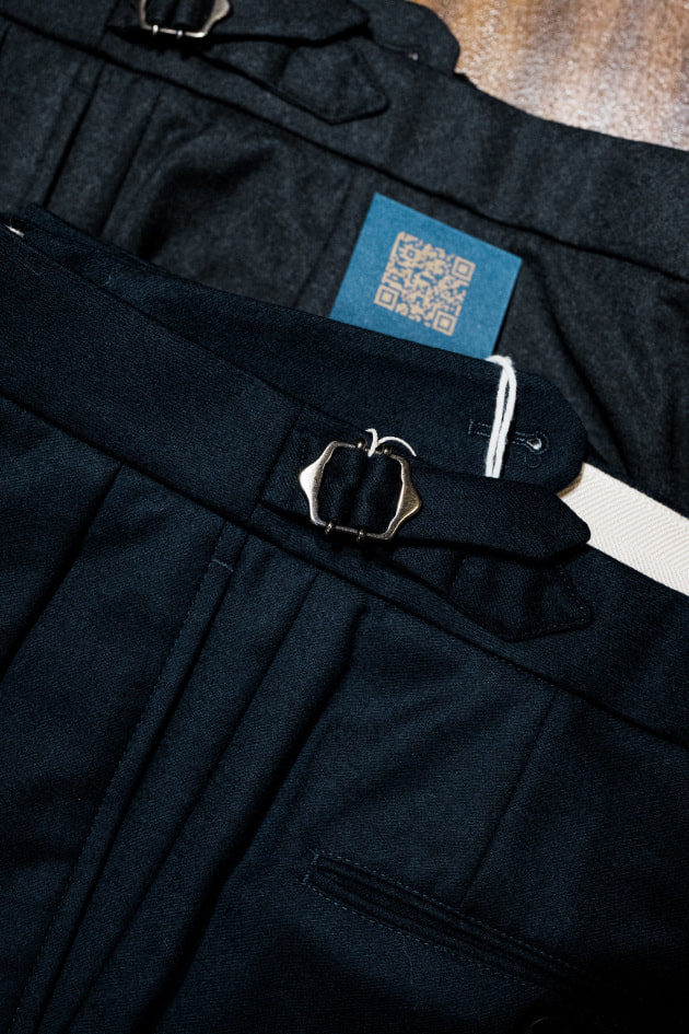 この伸縮性は前述の通り、動作や食事の後でも快適な穿き心地を保つためのものであって、下のサイズを選ぶための伸縮性ではないというのが、先に入荷してきていますコットンツイルの同モデルをご案内していて思いました。このバンドのために、<HERRICK>をはいたことある方が普段よりも小さいサイズを購入したというケースは未だになく、普段通りのサイズで問題ないという方ばかりです。