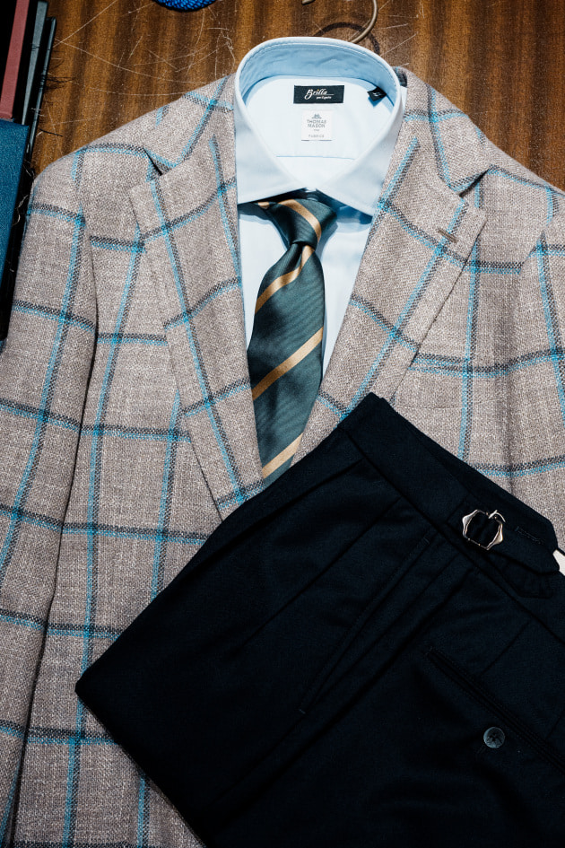今回は当店6階のスーツ、ジャケットフロアのみのアイテムで合わせましたが、タイトルにも書いている通り、ニット、ブルゾンにも相性良いです。