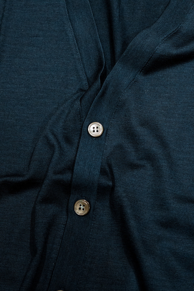 薄手の肉感と保温性を兼ね備えたウール天竺は、春夏の冷房対策から秋冬の重ね着まで長いシーズン活躍します。カーディガンというアイテムは軽やかでありながらきちんと感もあるので、衣替え直後はジャケットがわりに、気温が下がってきたらジャケットのインナーに、といった具合で使用していただければかなり重宝すると思います。