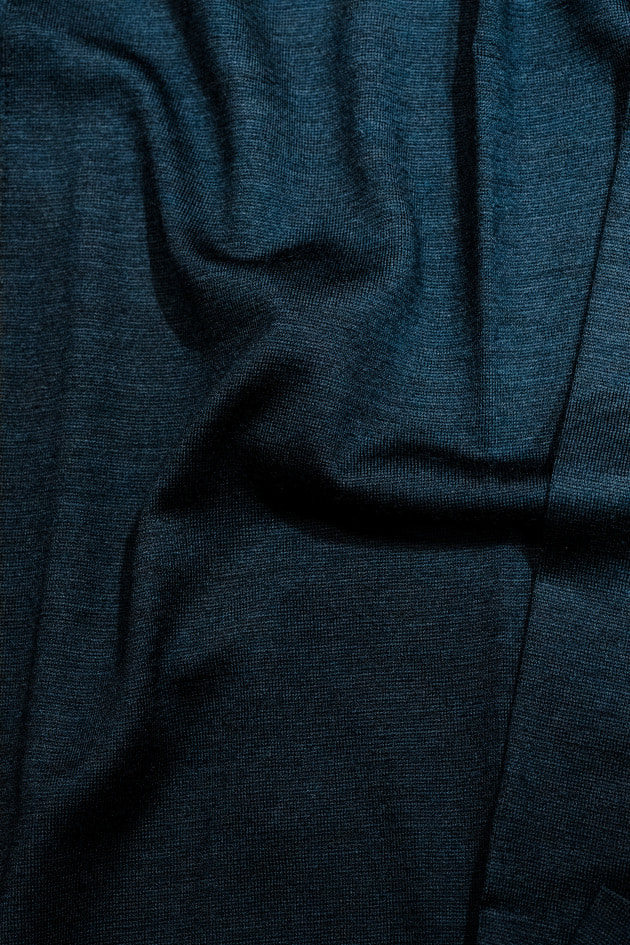 細番手ウール糸を使用した天竺編みは、滑らかな肌触りと自然な光沢を持ち、軽やかな着心地を実現しています。ウール100%ながら、甘撚りに仕上げた糸は斜行を抑えつつ、ストレッチ性を持たせることで快適性を高めました。手洗い可能で毛玉も出にくく、日常使いに嬉しい耐久性も備えています。