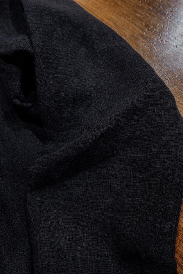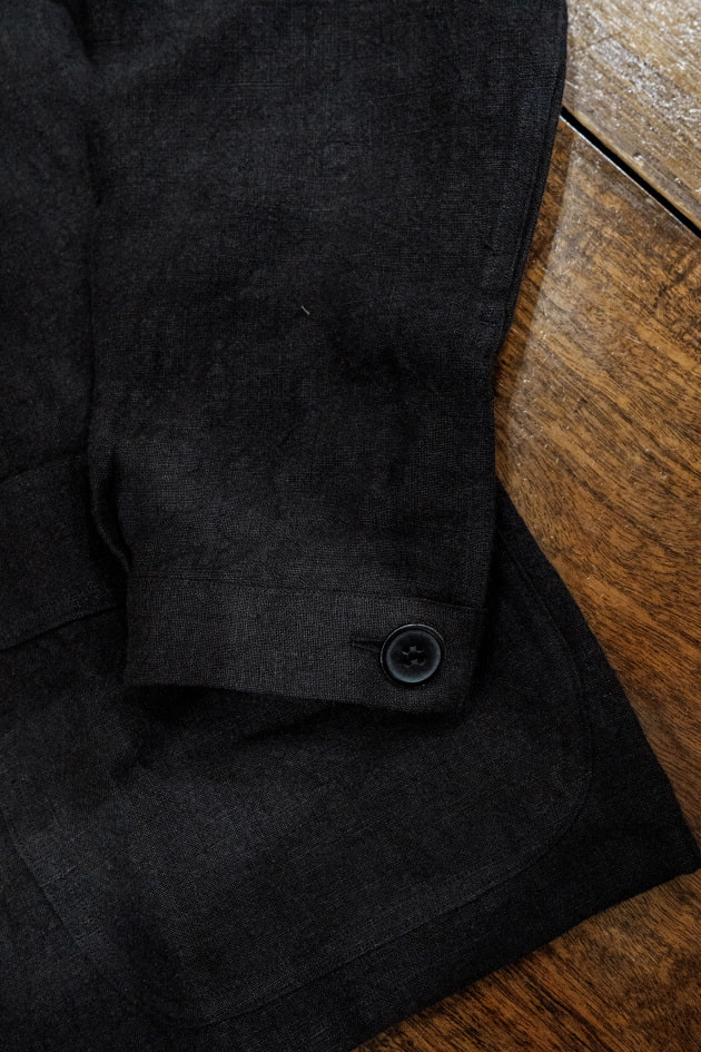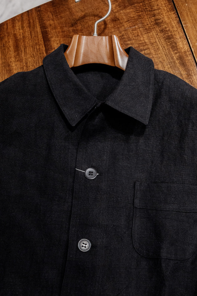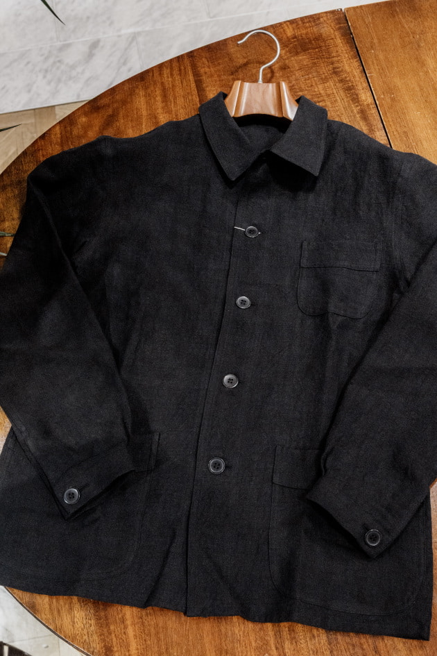 そんなカバーオール、今回の<BEAMS F>オリジナルではリネン100%、目付は355gの生地を採用。原料にはリネンの中でも繊細で質の高い素材として知られているベルギーリネンを使用しています。