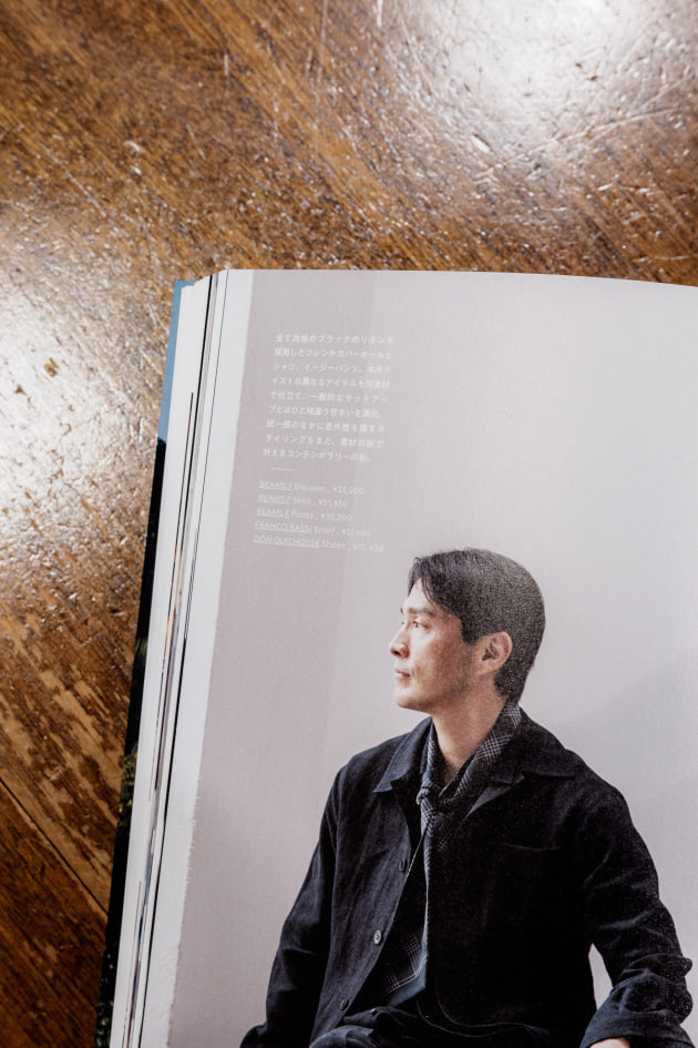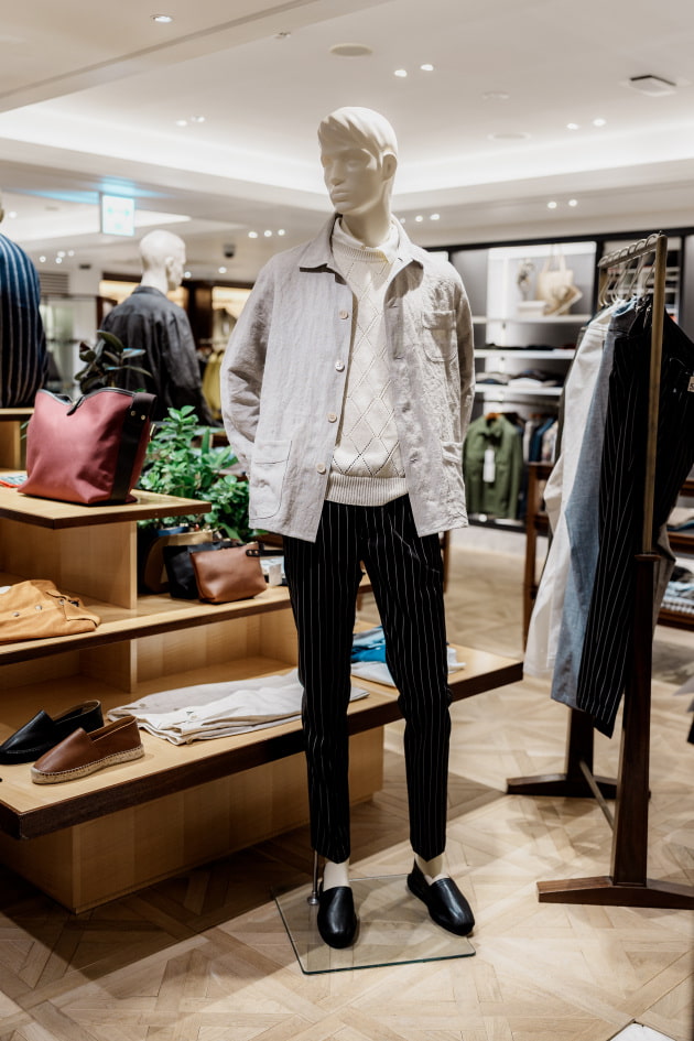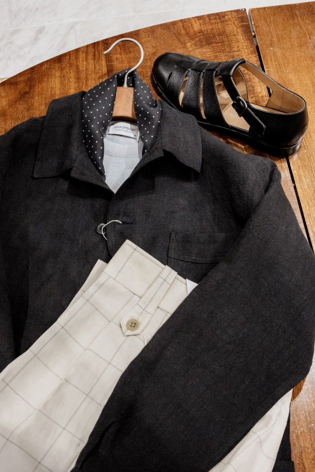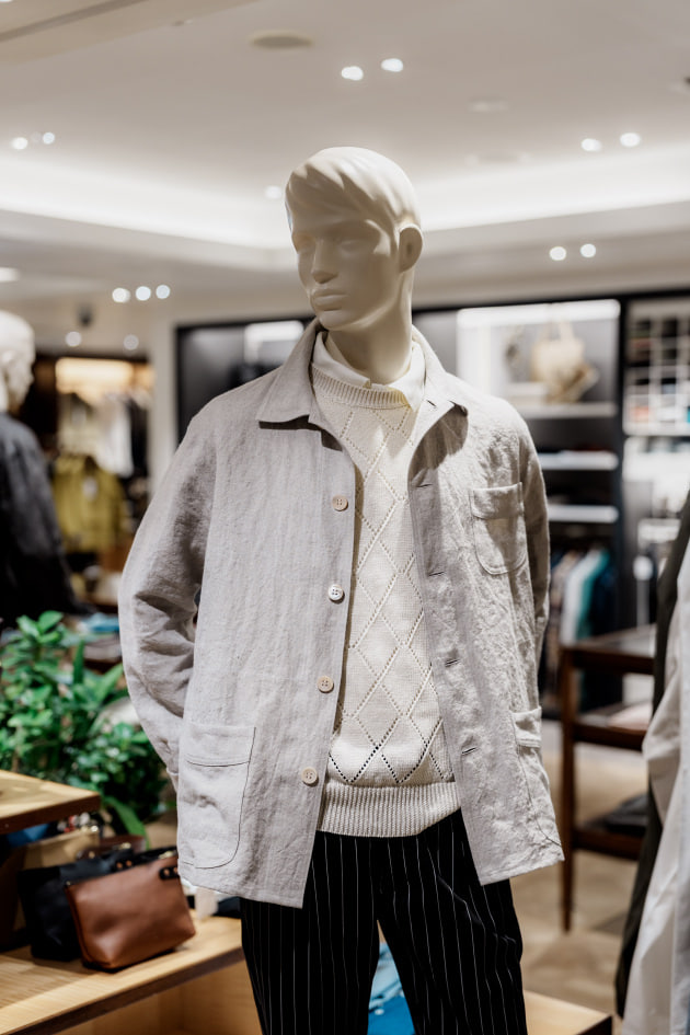 ダブルステッチや貝ボタンといったディテールこだわっており、一貫して大人が上品な印象で着用できるように調整されていますね。