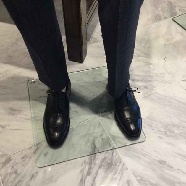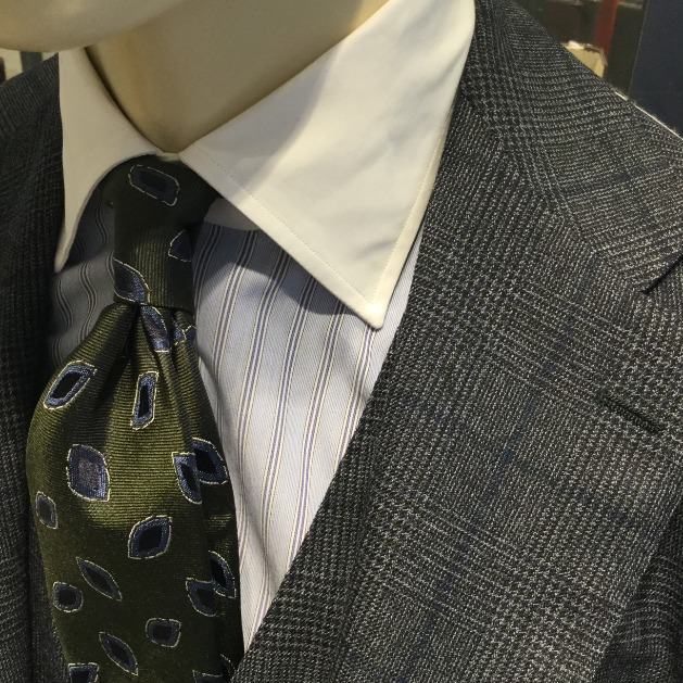 クレリックシャツにグリーンベースのネクタイ。良い合わせですね。