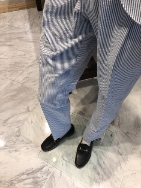インナーもシャツだけでなく、カットソーも良いですし、その時は足元にスニーカーやグルカサンダルなどもよろしいかと。