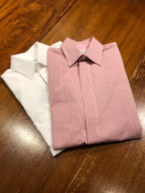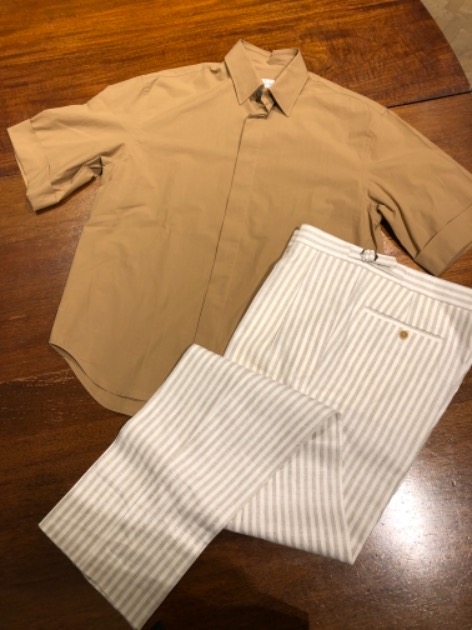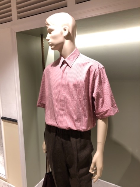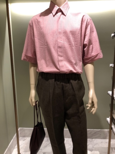 BAGUTTA シアサッカーストライプショートスリーブシャツ