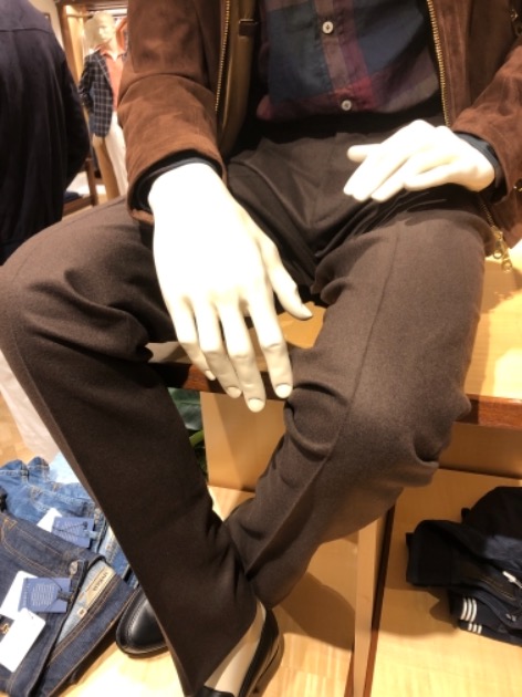 さらに濃いブラウンのパンツを履き